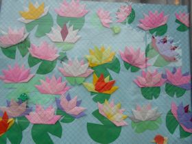 ハスの花の壁紙が完成!私達だけで見ているのはもったいないので、の窓に貼りました。見て下さい /8月