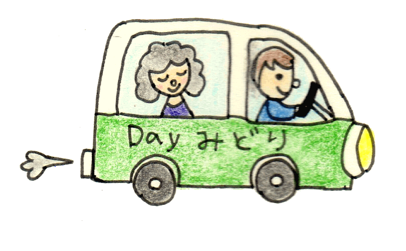 送迎は、移動サービスW.Coらら・むーぶみどりがお手伝いいたします。 送迎も安心しておまかせいただけます。