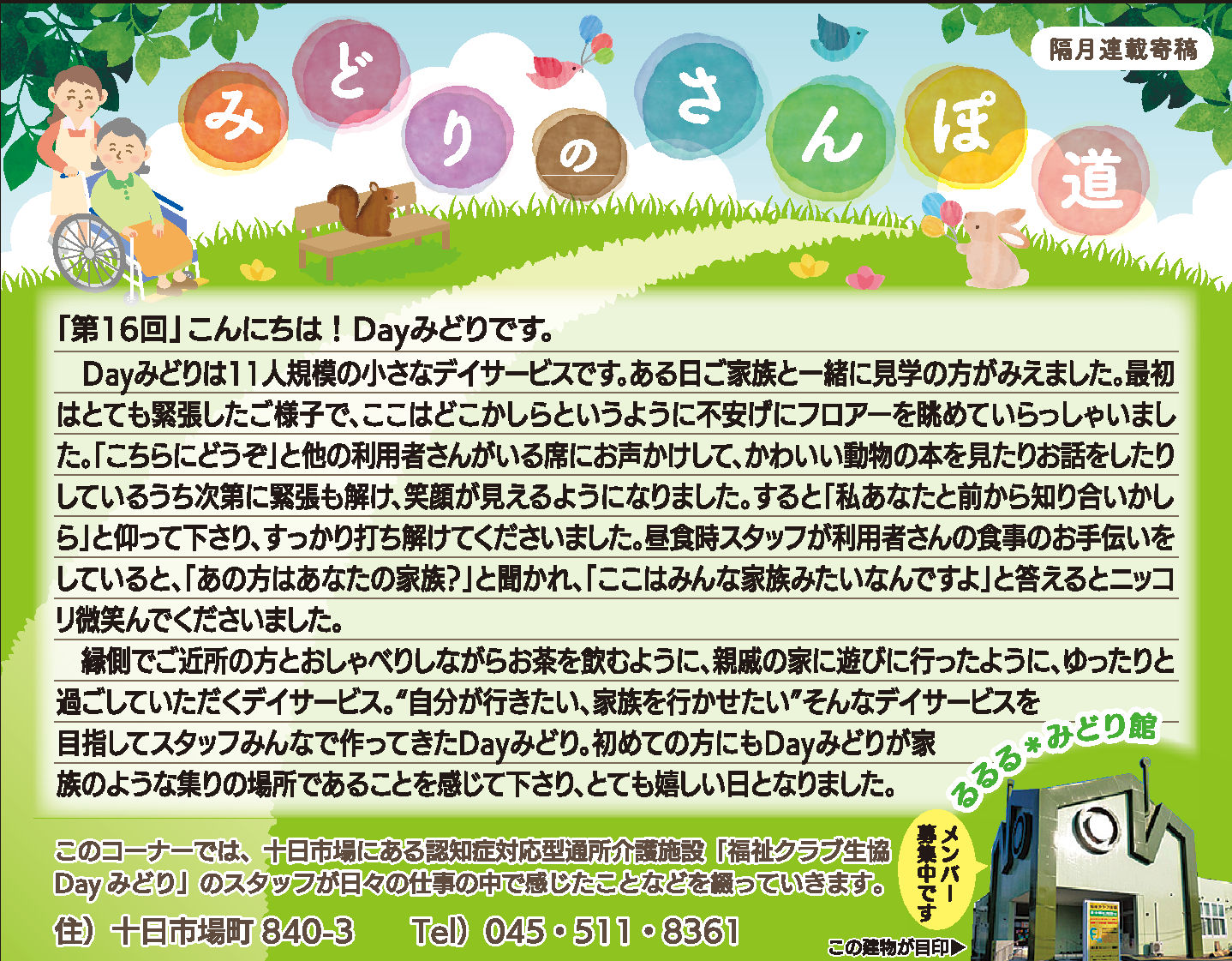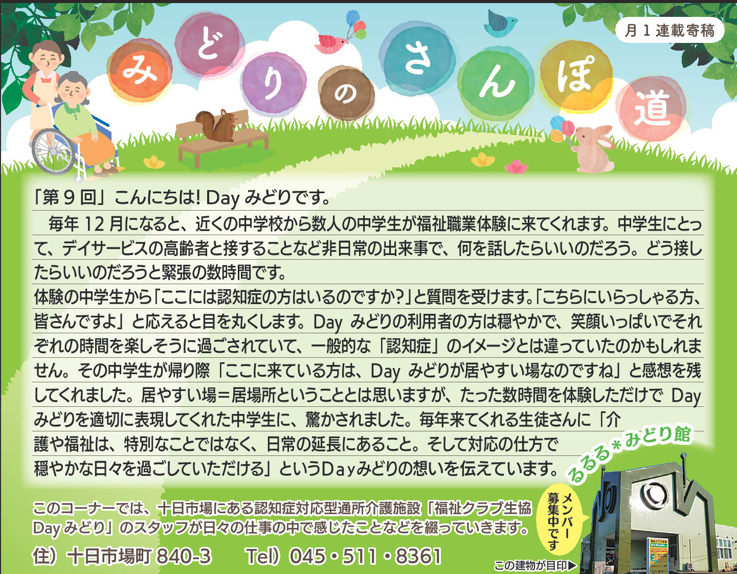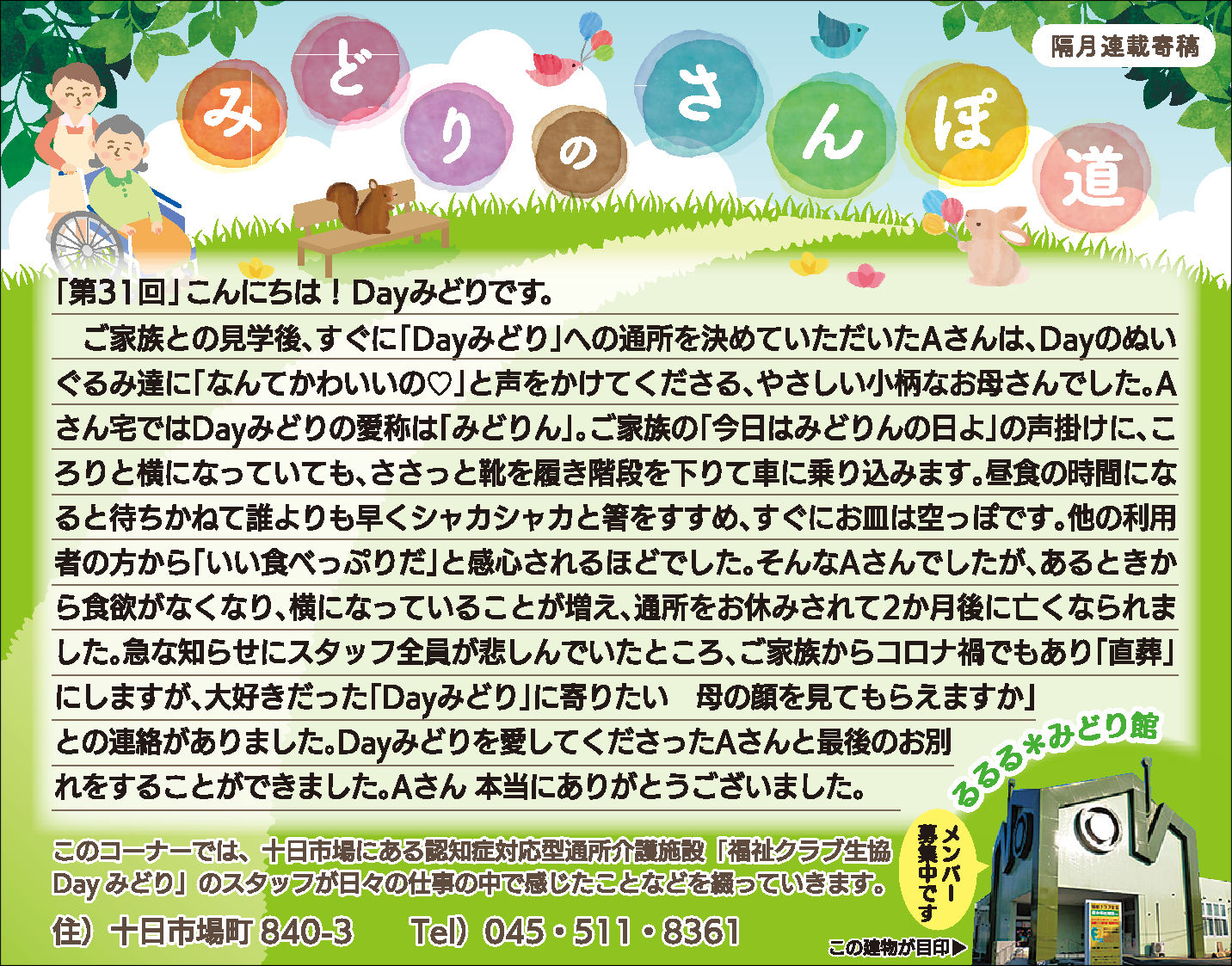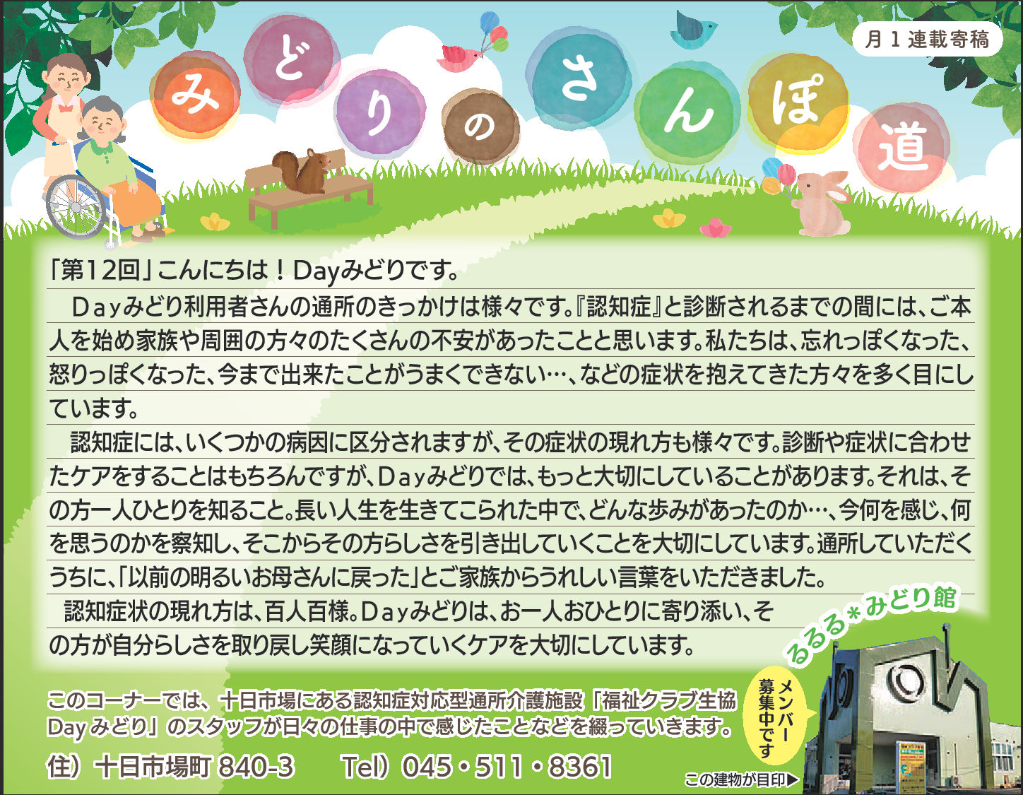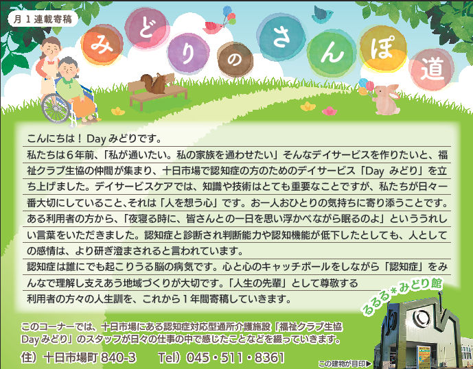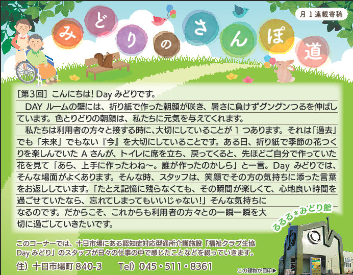 Dayみどりの利用者皆さんとの日々をタウンニュース(緑区版・最終木曜日))に寄稿させていただいています。