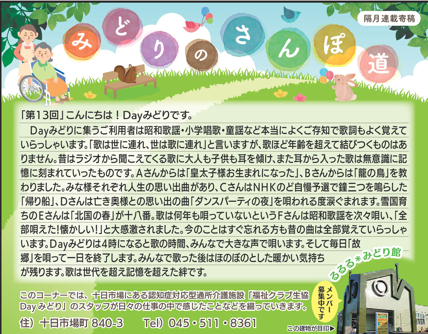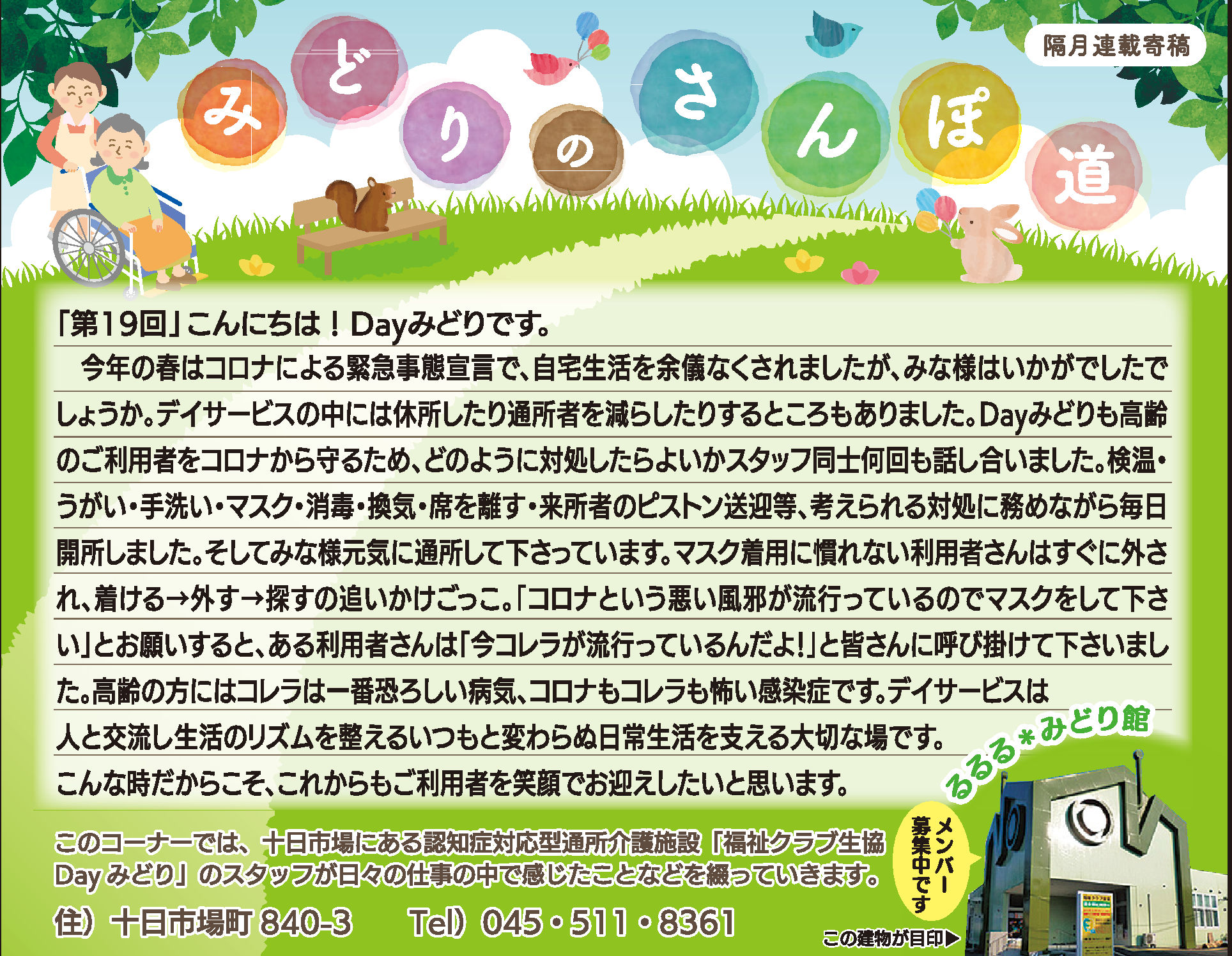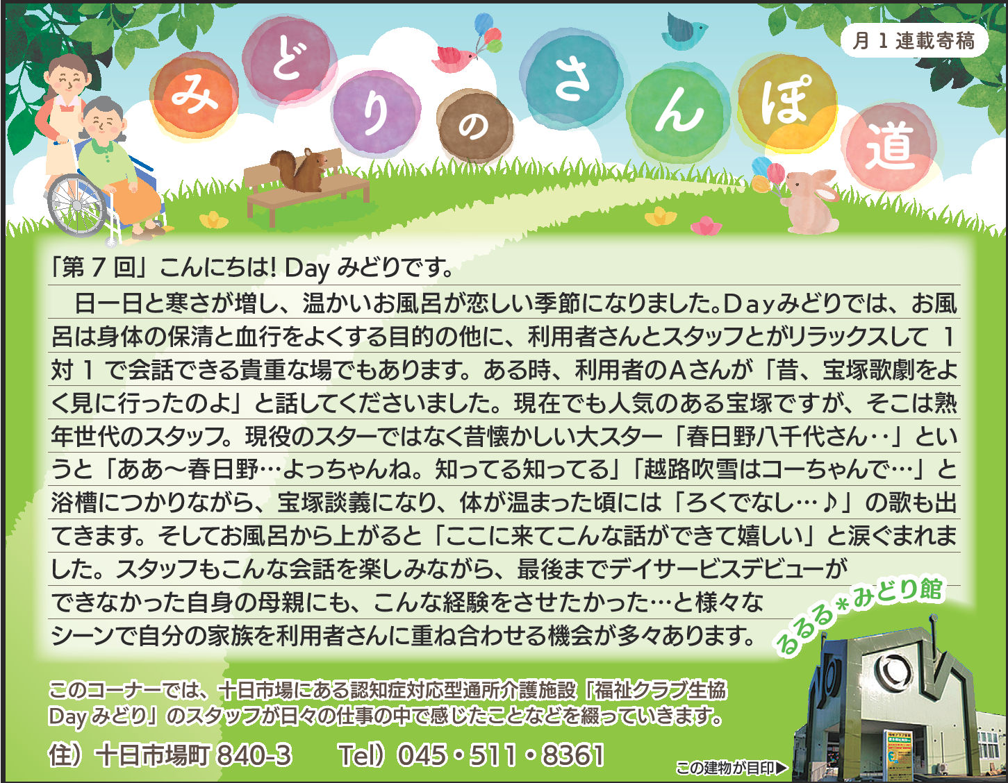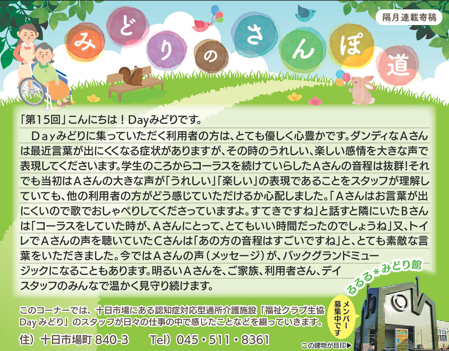 Dayみどりの利用者皆さんとの日々をタウンニュース(緑区版・最終木曜日))に寄稿させていただいています。