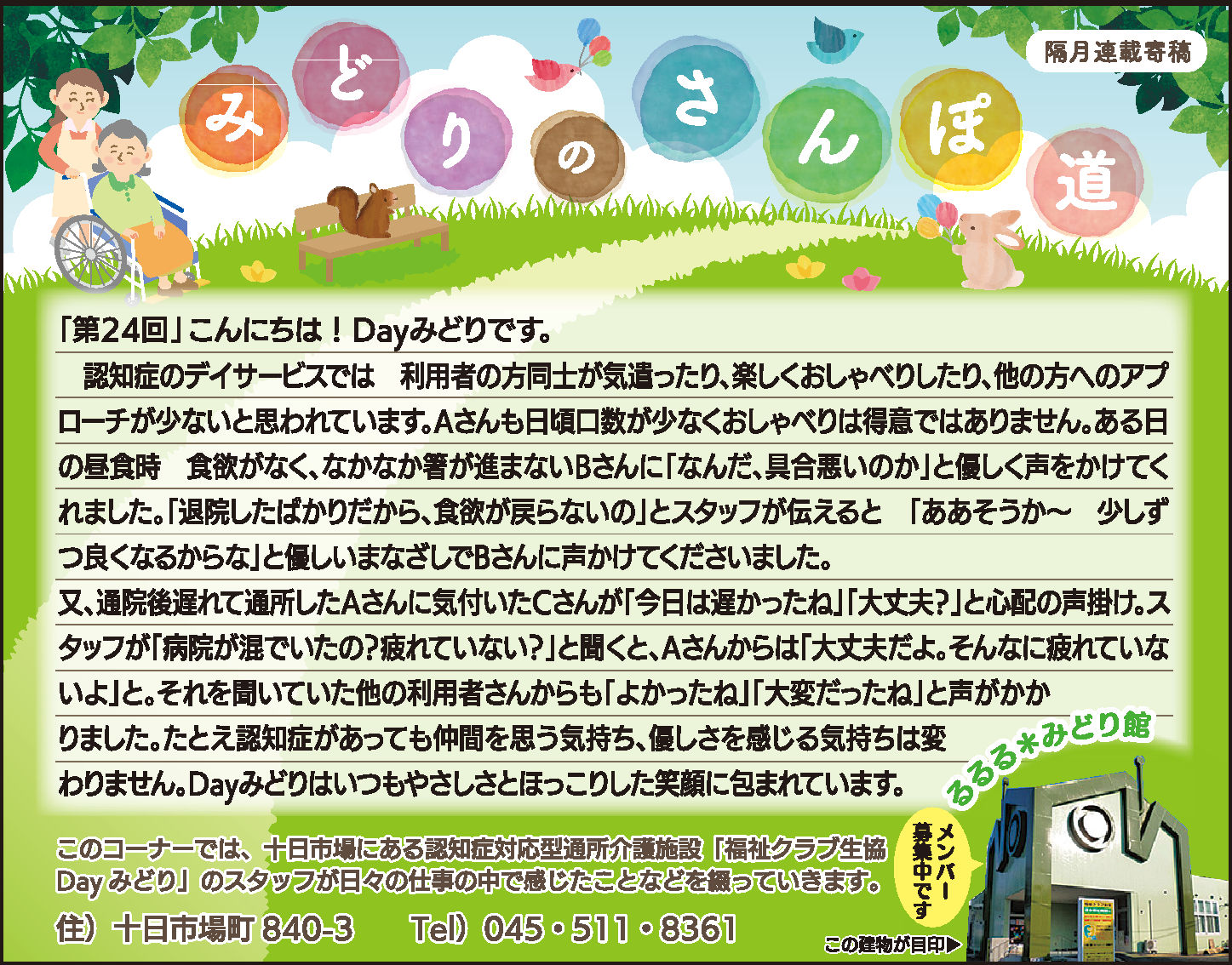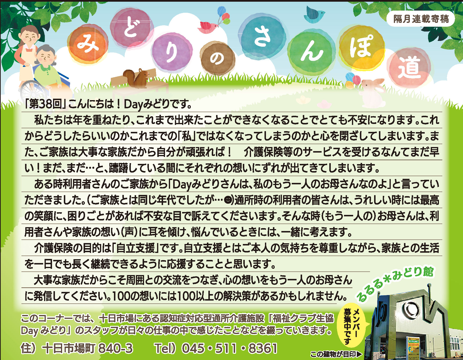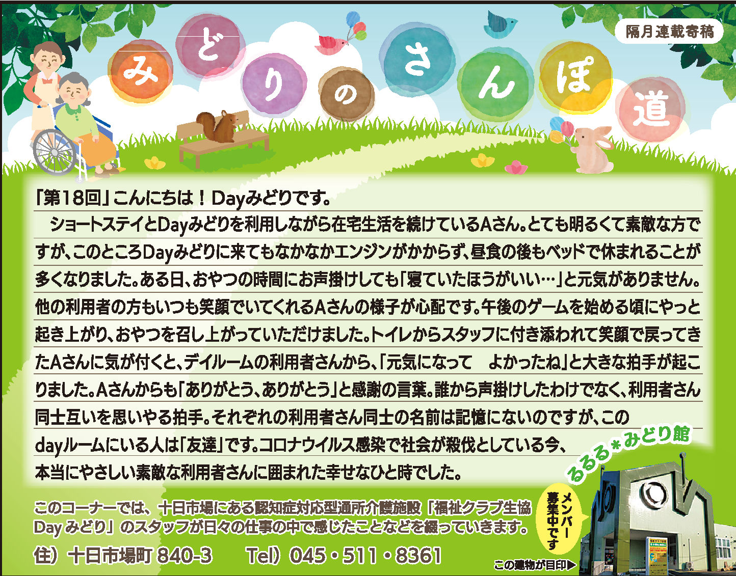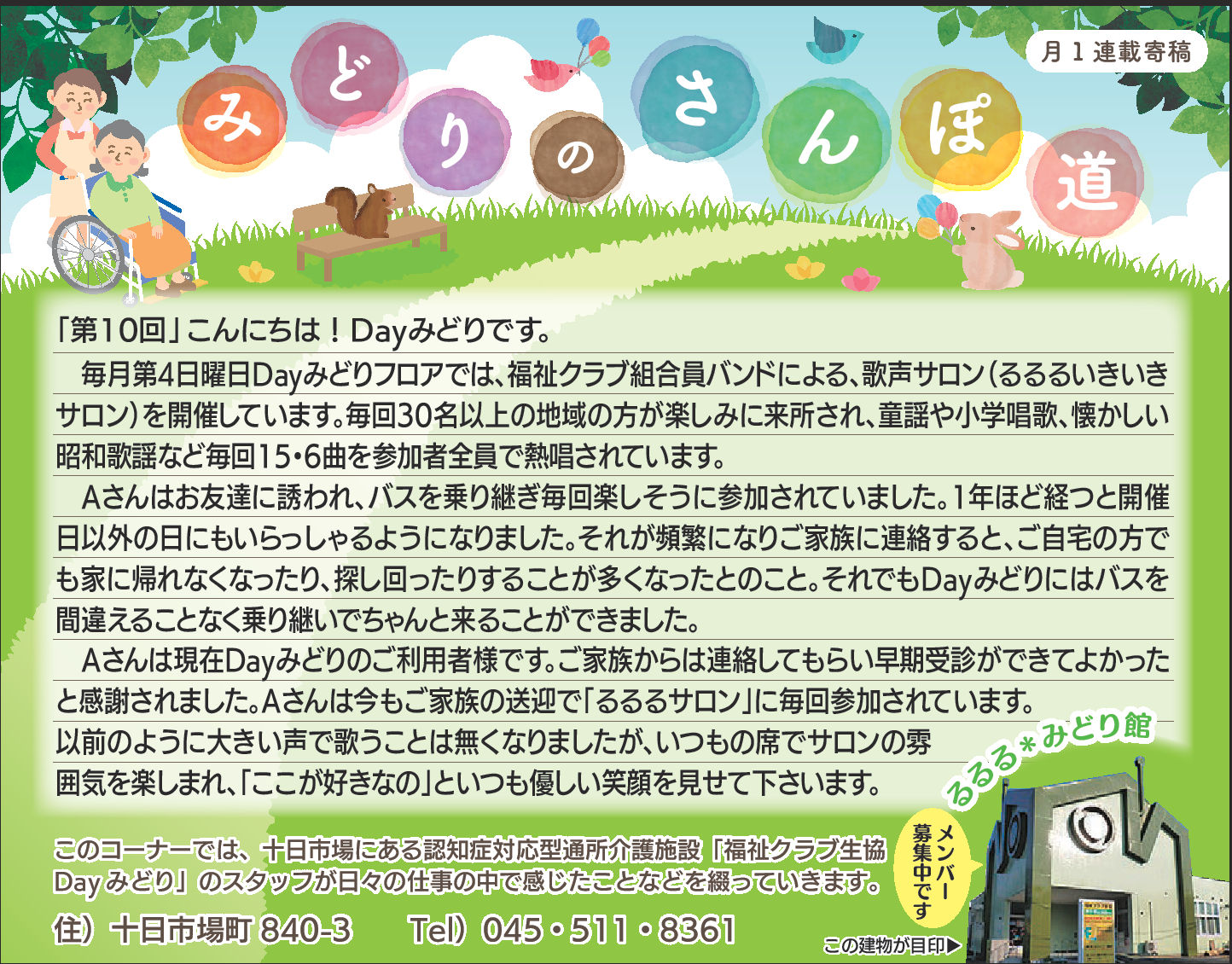 Dayみどりの利用者皆さんとの日々をタウンニュース(緑区版・最終木曜日))に寄稿させていただいています。