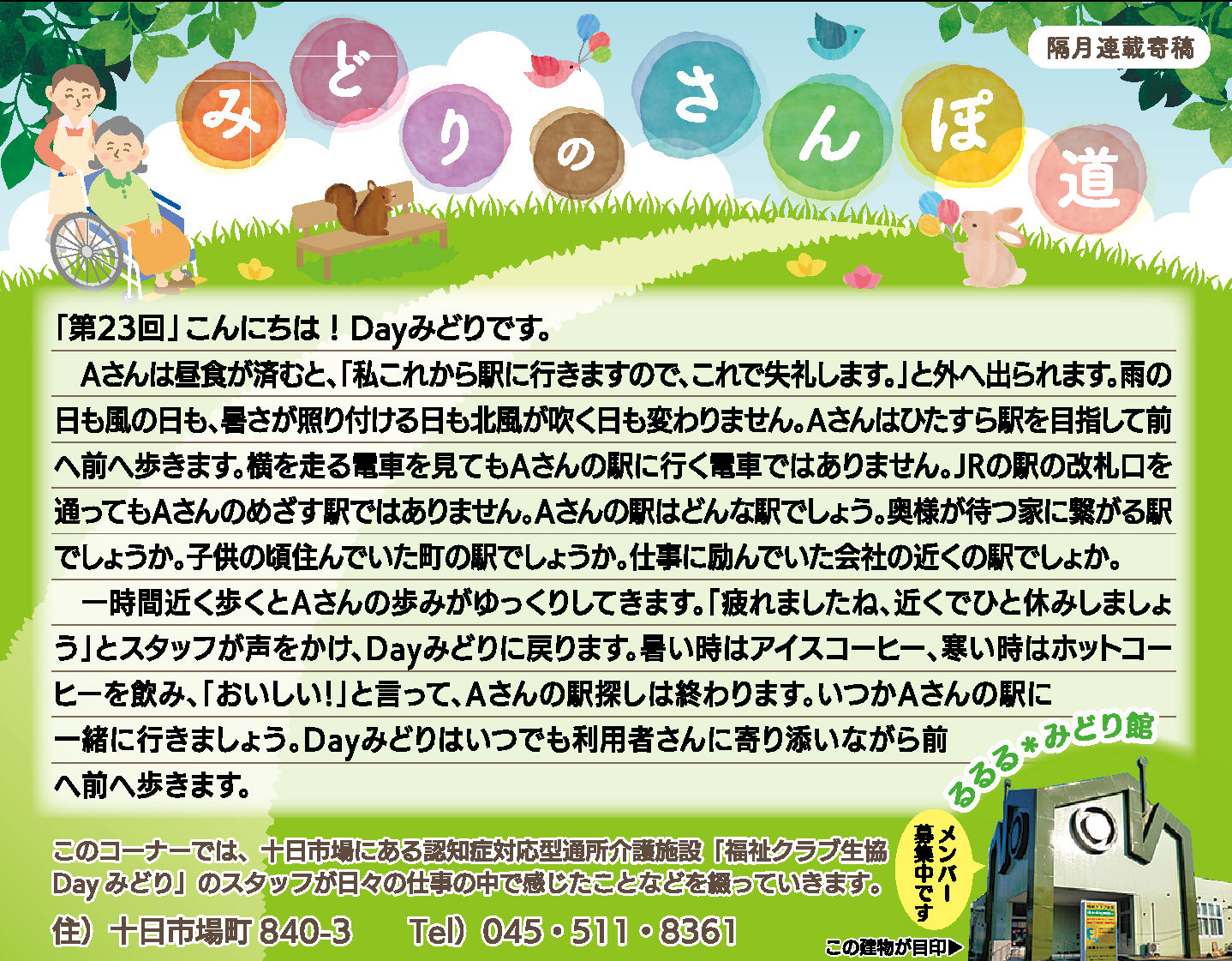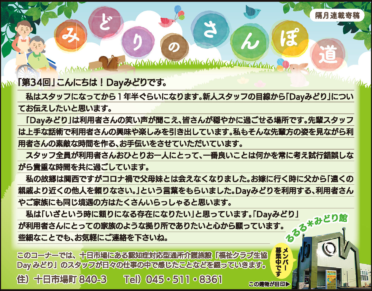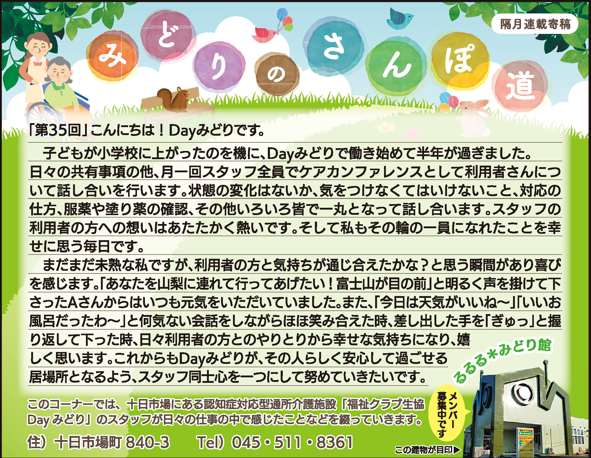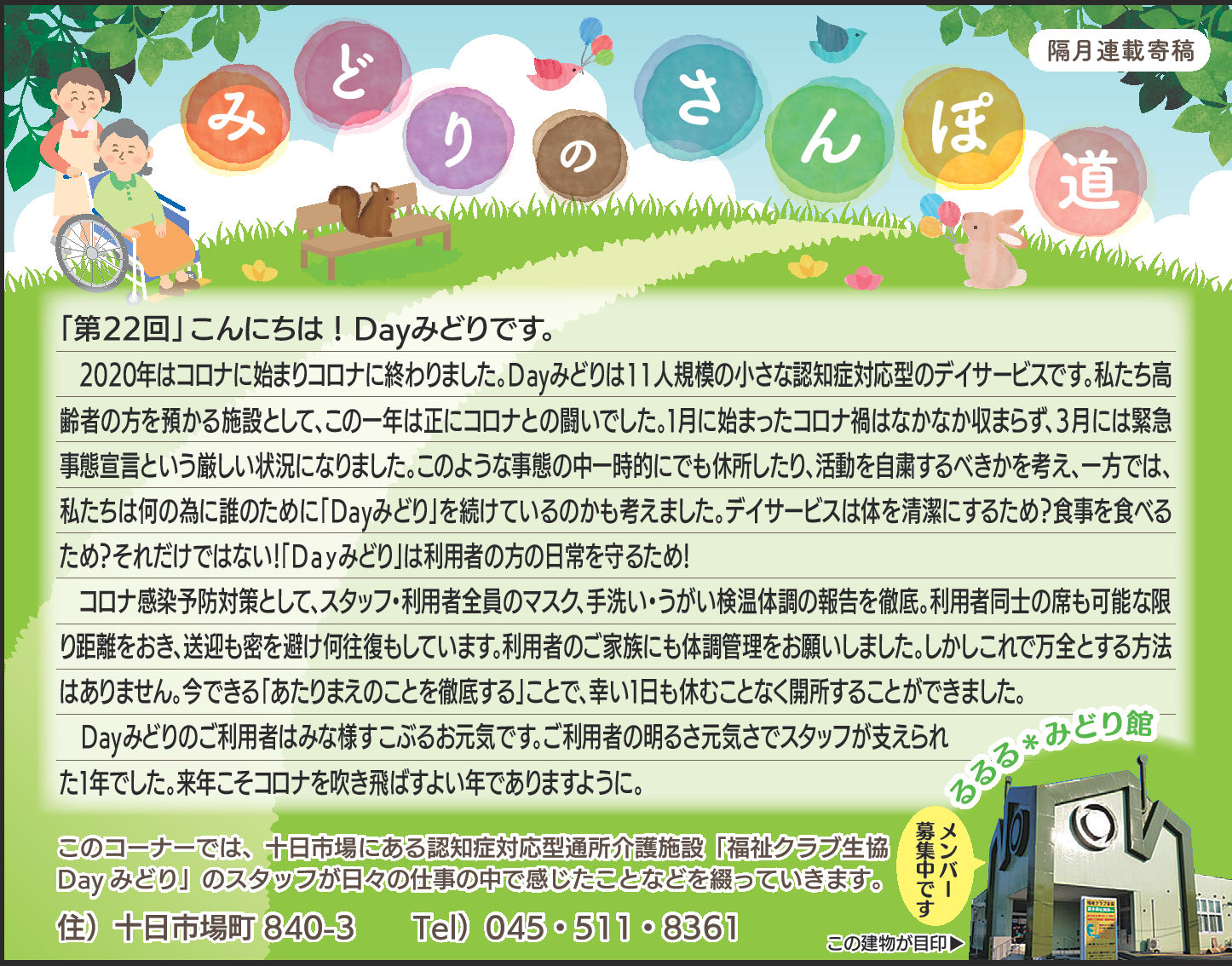 読んでいただいた多くの方から、「毎月楽しみにしている」「もっといろいろな方に見ていただいたら?」とのお言葉をいただき、Dayみどりのホームページでも読んでいただけるようにしています。