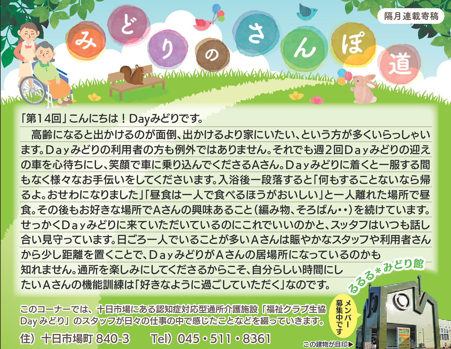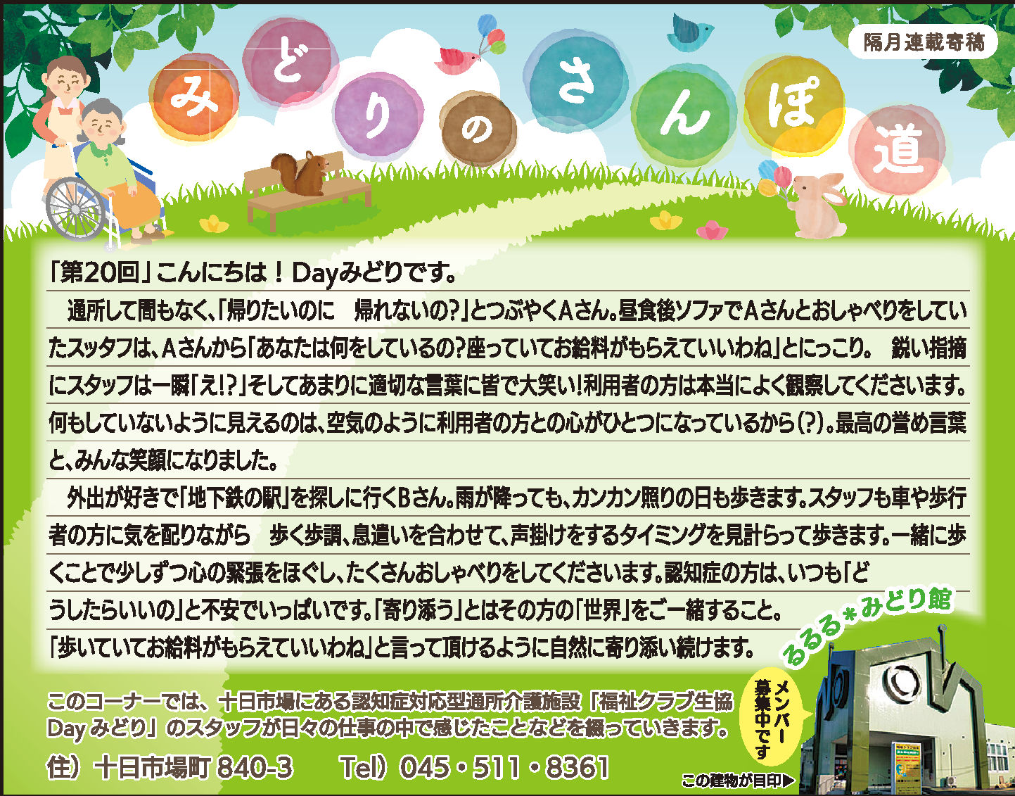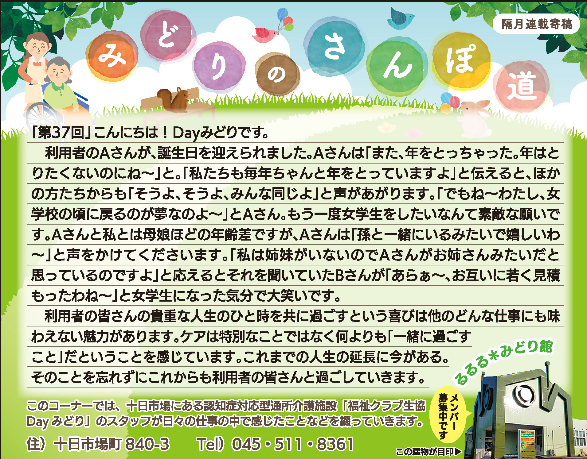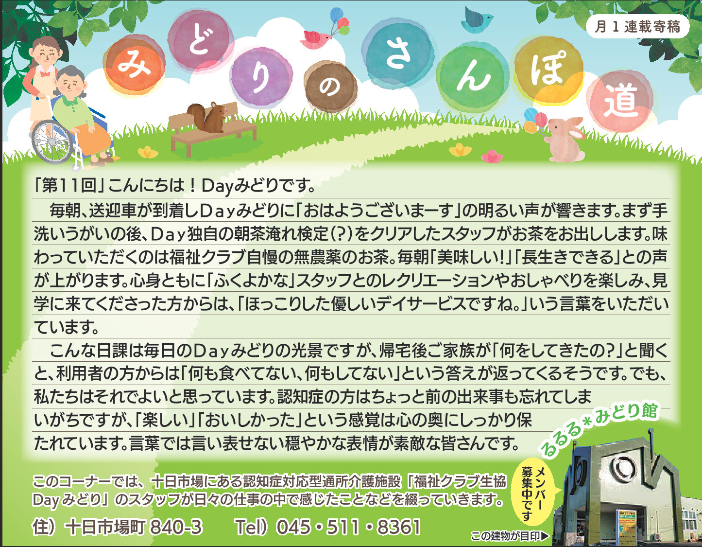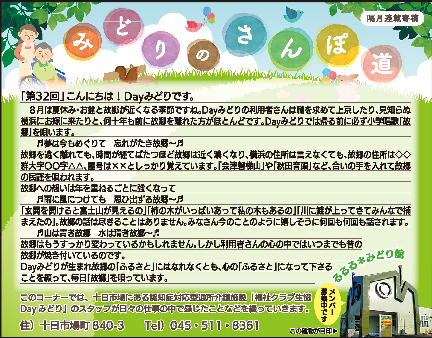 読んでいただいた多くの方から、「毎月楽しみにしている」「もっといろいろな方に見ていただいたら?」とのお言葉をいただき、Dayみどりのホームページでも読んでいただけるようにしています。