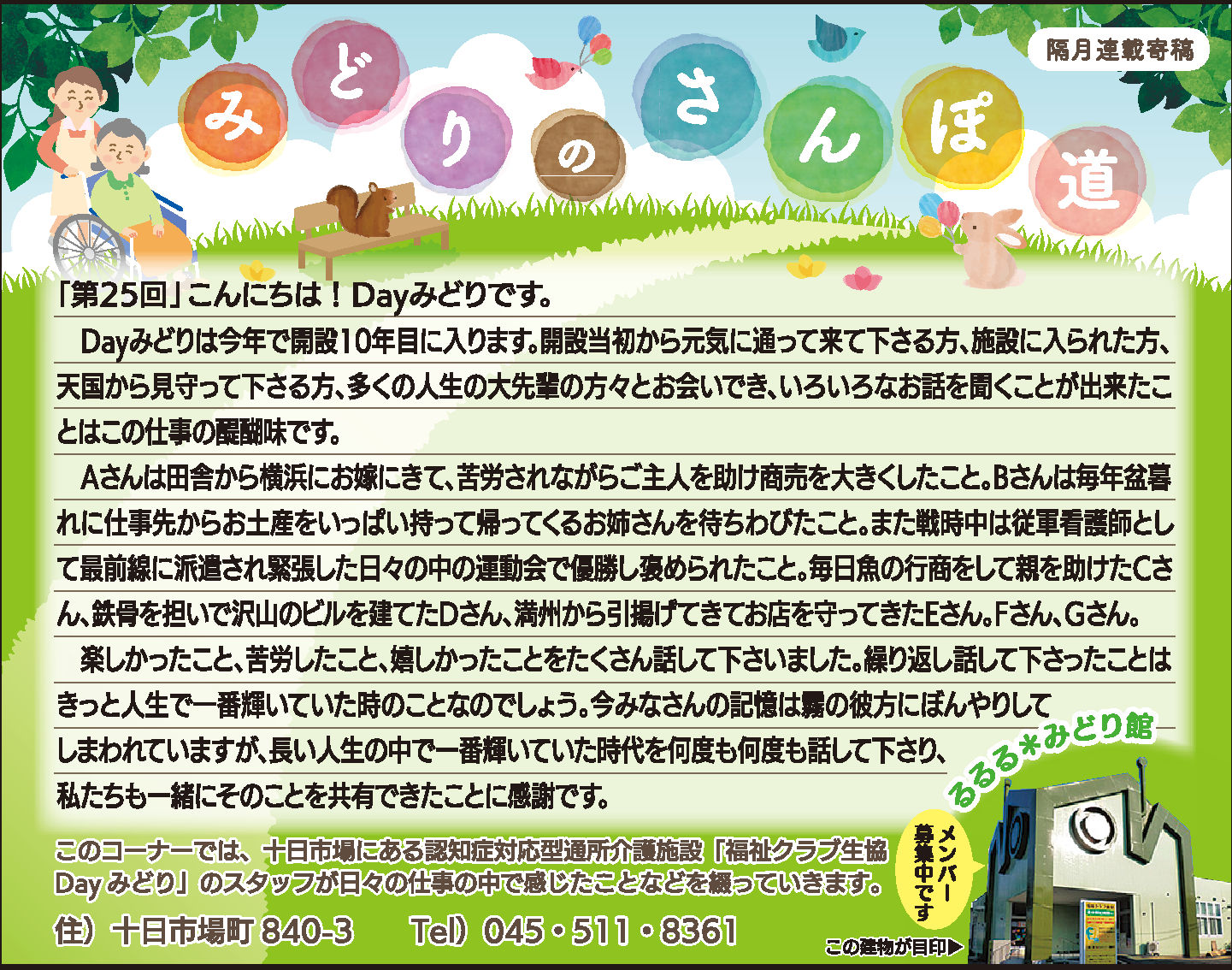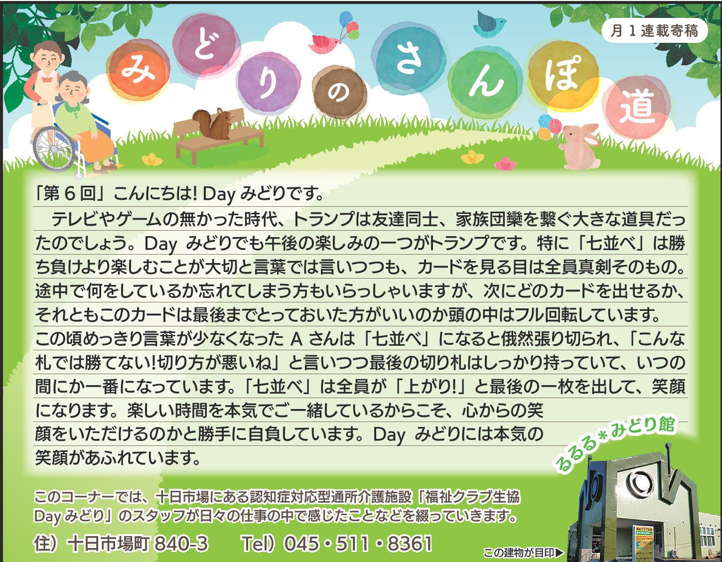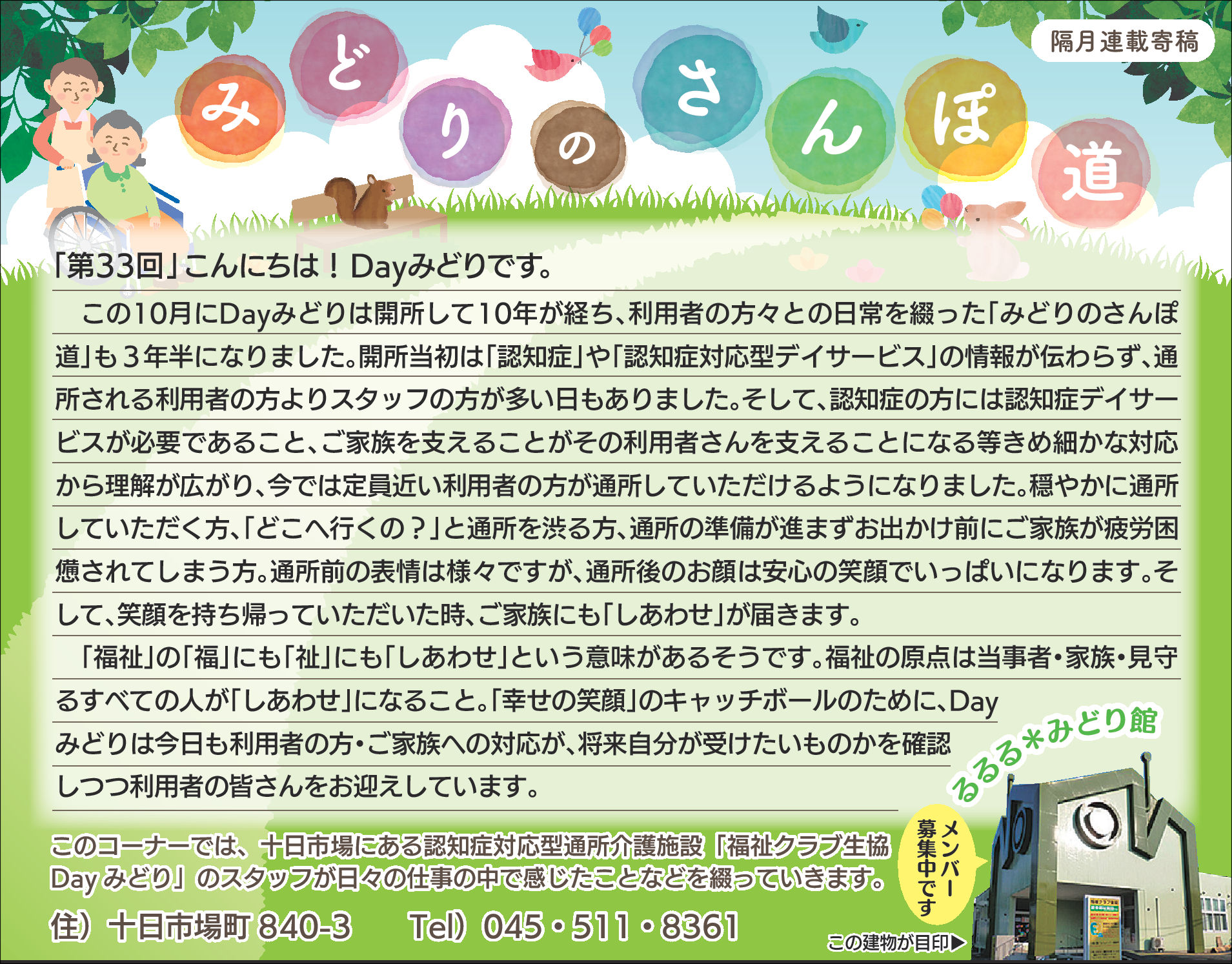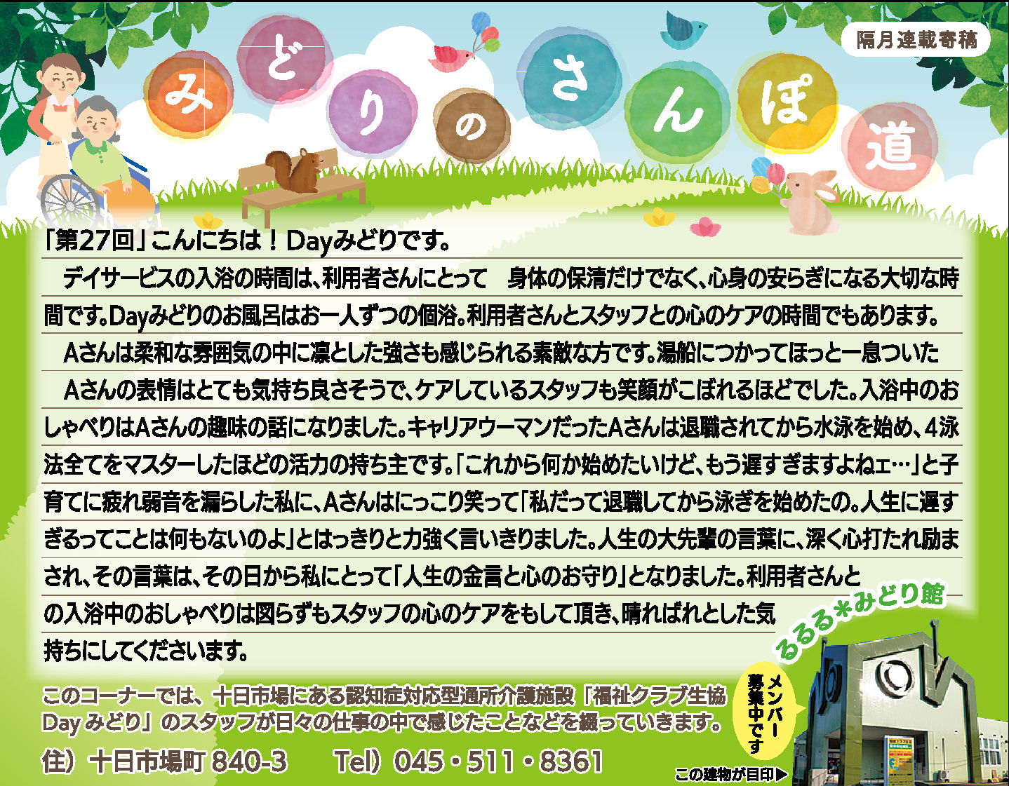 読んでいただいた多くの方から、「毎月楽しみにしている」「もっといろいろな方に見ていただいたら?」とのお言葉をいただき、Dayみどりのホームページでも読んでいただけるようにしています。