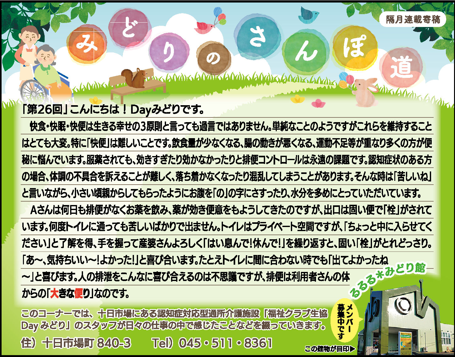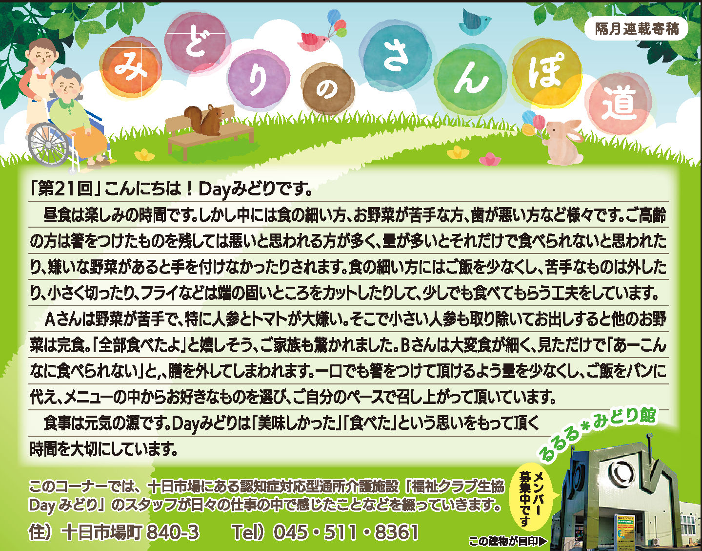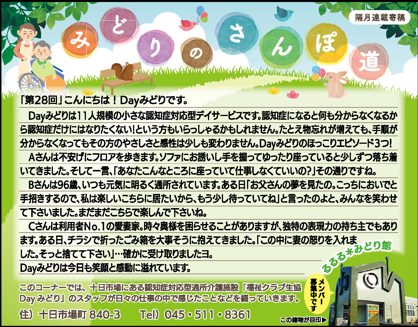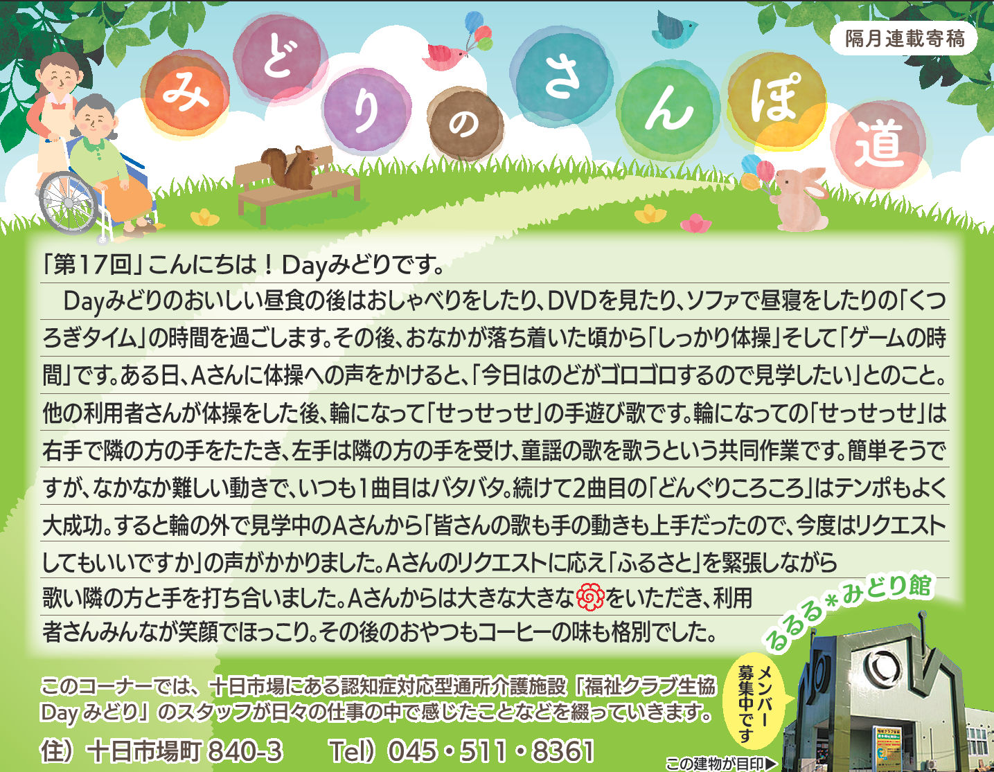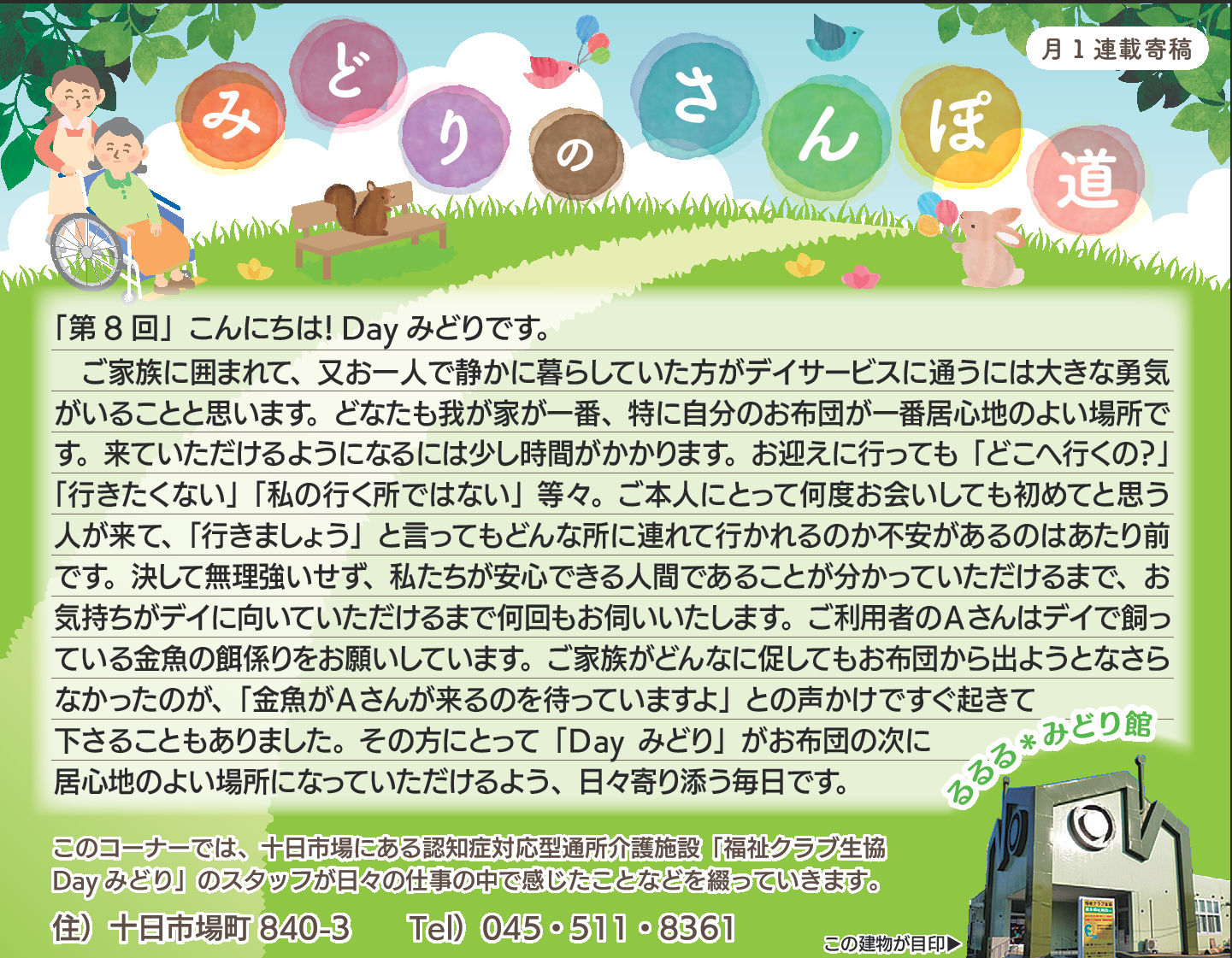読んでいただいた多くの方から、「毎月楽しみにしている」「もっといろいろな方に見ていただいたら?」とのお言葉をいただき、Dayみどりのホームページでも読んでいただけるようにしています。
