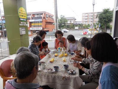 天候の良い時には、外のポーチでおやつやお茶を楽しんでいます。